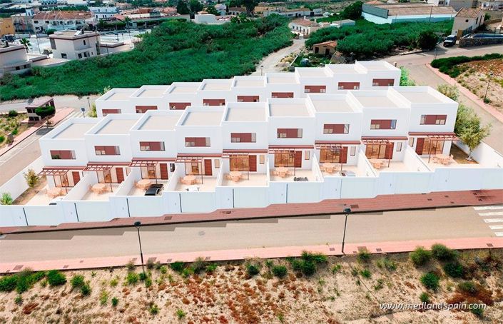 Situées dans le village d’Antas, à une courte distance en voiture de la côte méditerranéenne d’Almería, ces maisons mitoyennes allient le calme d’un environnement andalou traditionnel au confort d’une situation proche de la mer. Les plages de Garrucha et Mojácar sont accessibles en environ 20 minutes en voiture et offrent une ambiance côtière animée avec des bars de plage et des promenades familiales. Les amateurs de golf apprécieront la proximité du prestigieux Desert Springs Golf Club, situé également à seulement 20 minutes. Le village d’Antas dispose de toutes les commodités nécessaires au quotidien, comme des restaurants, cafés, un centre de santé et des supermarchés, ainsi que des points d’intérêt tels que l’aqueduc du Real de Antas et plusieurs sites archéologiques. Le centre de Vera se trouve à seulement 10 minutes et propose un large choix de commerces et de services.Chaque maison comprend 3 chambres et 2 salles de bains réparties sur deux niveaux, conçues avec soin pour offrir confort et fonctionnalité. Le rez-de-chaussée dispose d’un salon et d’une salle à manger donnant sur la terrasse, d’une cuisine indépendante et de toilettes pour invités. À l’étage se trouvent les chambres, dont la principale avec salle de bains privative. Les logements sont proposés avec ou sans piscine, selon le modèle choisi, et possèdent tous une place de stationnement sur la parcelle. Chaque bien inclut la préinstallation pour la climatisation, permettant aux propriétaires de compléter le système selon leurs préférences.Ces maisons mitoyennes représentent une belle opportunité pour ceux qui recherchent un cadre de vie paisible à proximité des plus belles plages, des parcours de golf et des services d’Almería. Leur emplacement associe la sérénité de l’arrière-pays à d’excellentes liaisons routières, idéales pour une résidence principale ou des séjours de vacances en toute détente.