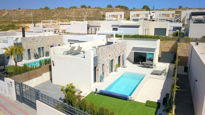 Ce complexe thermal et hôtelier de 3 chambres à coucher, Individuelle Villa à La Finca Golf 5* est situé dans un cadre prestigieux à Costa Blanca Sud, à seulement 10 minutes à pied des cafés, restaurants et magasins. La ville voisine d'Algorfa est à seulement 5 minutes en voiture, tandis que Quesada et Benijófar sont accessibles en 10 minutes pour plus de commodités, et les belles plages côtières sont à seulement 20 minutes. Cette maison moderne et impeccable de 118m2 est située sur un terrain de 380m2 Terrain et a été construite fin 2024 par l'un des constructeurs les plus réputés de la région, offrant une vie élégante et à un niveau. Le salon spacieux et ouvert dispose d'un panneau murale infrarouge et de larges portes vitrées coulissantes avec stores électriques, donnant sur le patio et la piscine. Le Cuisine équipée contemporain comprend un bar à petit-déjeuner et il y a un Buanderie. Il y a trois chambres doubles, toutes avec des placards intégrés et un accès direct à la salle de bain Jardin, avec le maître bénéficiant d'une salle de douche Salle de bains attenante, plus il y a une salle de douche familiale supplémentaire et les deux bénéficient de Chauffage au sol. À l'extérieur, il y a un accès à un Solarium privé avec vue sur la campagne et le golf, avec une pergola électrique bioclimatique avec stores sur trois côtés. Le Jardin, magnifiquement entretenu, est doté d'un gazon artificiel, de zones de galets et d'un Piscine privé chauffé 9 x 3 (connecté au Wi-Fi). Les avantages supplémentaires comprennent une porte électrique pour l'accès des voitures, des panneaux solaires qui sont connectés au réseau, ainsi qu'une zone d'air avec des conduits Climatisation partout, ce qui en fait une propriété vraiment exceptionnelle.