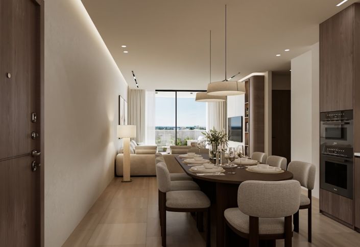 The interiors embody a sophisticated design language that celebrates natural materials, neutral palettes, and the seamless connection between indoor and outdoor living. Every space has been crafted to evoke calm, comfort, and timeless elegance. Designed as sanctuaries of comfort and style. Expansive open-plan layouts create airy environments that invite relaxation while providing the perfect setting for entertaining. The kitchen and dining areas are designed for both everyday functionality and memorable entertaining. Sleek, modern kitchens flow naturally into elegant dining spaces, creating the perfect environment for family meals and social gatherings.