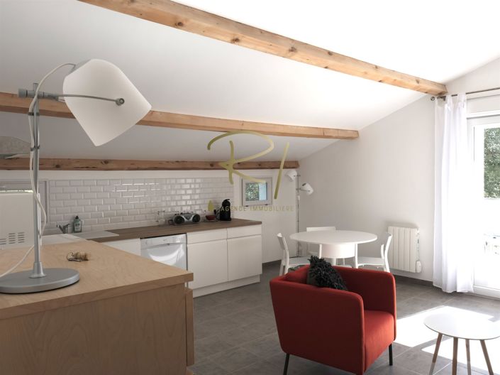 Vous trouverez un appartement de type T2 d’environ 50m2 de plain-pied composé d’un séjour avec cuisine, une chambre, une salle d’eau, un Wc indépendant, et une terrasse d’environ 30m2.