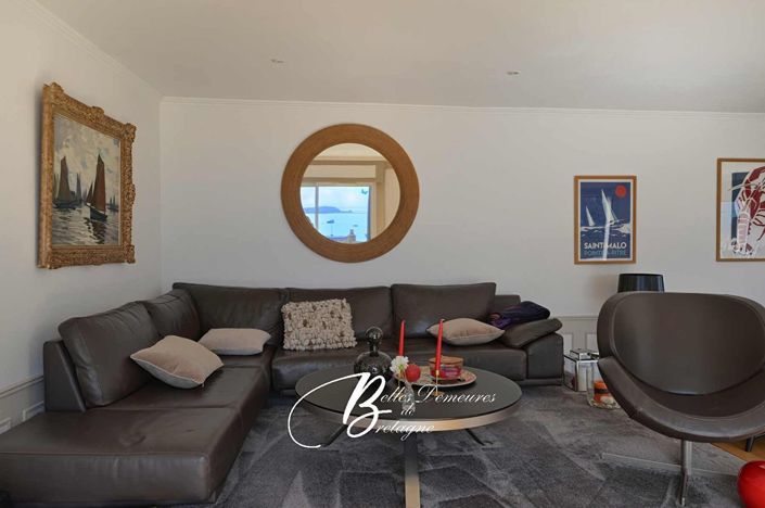 Le coeur de la maison se trouve dans ses espaces de vie : un salon plus intime avec sa cheminée-insert, puis un vaste salon-séjour baigné de lumière, prolongé par une cuisine ouverte. L'ensemble compose un lieu convivial, prolongé par une grande terrasse en bois pensée pour profiter pleinement de la vue mer et du rythme du petit port.