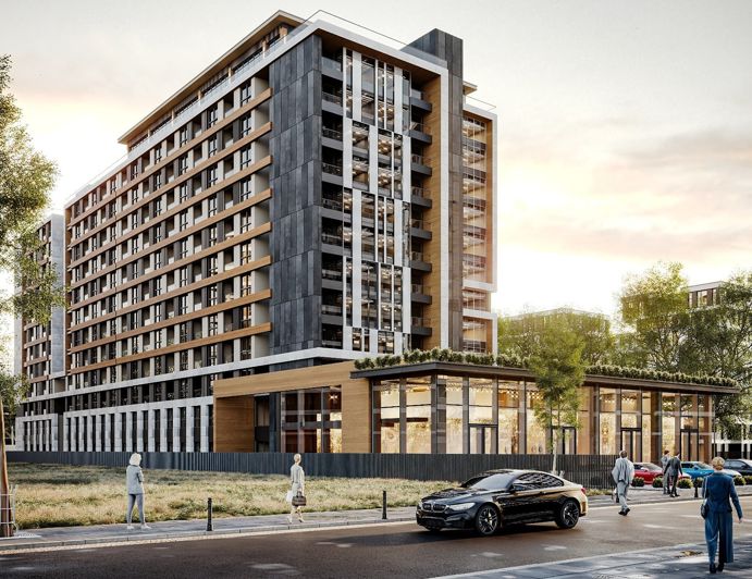 The 1-bedroom apartments in the project consist of a living room with an open-plan kitchen, a bedroom, a bathroom, a hallway, and a balcony. All apartments are equipped with automatic shutters, ready air conditioning infrastructure, a built-in kitchen set, and spot LED lighting.