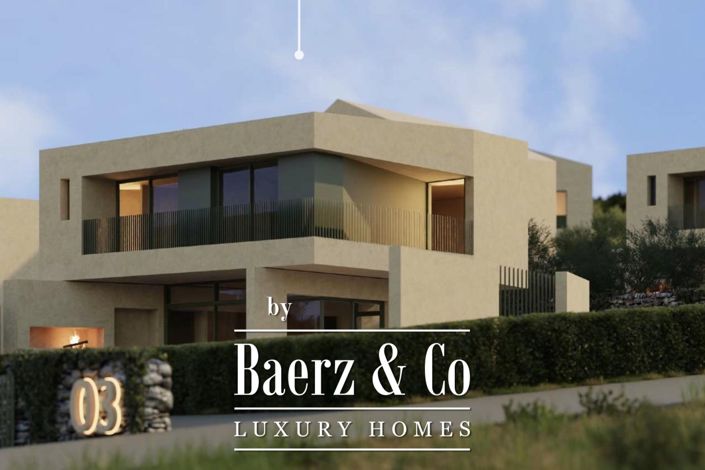 Brac - Sutivan | Sale of luxury villas with a pool and sea view in a modern complex of 14 new-build properties with a superior standard of living.Villa 03 – has a total gross area of 140 m², with living space distributed over two floors. The ground floor consists of a spacious living room with a sea view, a kitchen with a dining area, a staircase, and a toilet with a laundry room. The living room opens onto a terrace with a swimming pool. The upper floor features three bedrooms, each with its own bathroom, an entrance hall, and a loggia with a sea view.The outdoor area includes a carefully landscaped Mediterranean-style garden, an outdoor barbecue, a swimming pool, and spacious terraces and balconies providing ideal conditions for relaxation, sunbathing, and outdoor living. Several outdoor parking spaces are located on the western side of the yard.The villa is situated in an exceptionally quiet and attractive location in Sutivan on the island of Brac, just 170 meters from the sea, making it an ideal choice for a private residence or as an investment in luxury holiday rental.This is a new build, with planned completion by the end of 2027, combining contemporary architectural design, a high level of comfort and functionality, and beautiful open views of the sea and surroundings.An additional advantage of this property — the buyer does not pay real estate transfer tax, as the seller is a company.For any additional information, please feel free to contact us.