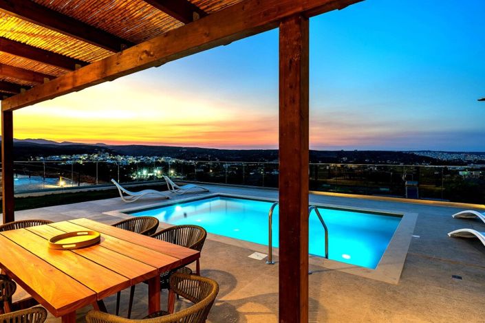 Villa est mise en avant La propriété offre une magnifique vue panoramique sur la mer, sur les montagnes, sur la ville, sur la forêt.est équipée de meubles, panneaux solaires pour le chauffage de l'eau, climatisation, piscine, place parking, jardin, gazon, chauffage, signalisation.