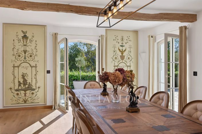 À quelque pas de toutes les commodités, cette grande propriété offre un cadre verdoyant, généreux et discret avec piscine et pool house. Nous retrouvons au sein de la maison principale et ces trois annexes, un total de 8 chambres et 8 salles de bains, idéal pour recevoir famille et amis tout en pouvant loger du personnel.