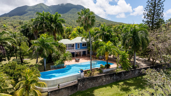 Bleu et Blanc is a distinctive Caribbean estate that captures the essence of relaxed island living, where architecture, landscape, and history come together in a setting that feels both refined and authentic.Set on approximately 2 acres of gently elevated land, the property enjoys a rare sense of space and privacy while remaining moments from Nevis’ most desirable west coast amenities. Positioned near the Four Seasons Resort, and bordering established communities including Poinciana Estate and Palm Garden Estate, the location offers both prestige and long-term investment strength.The home reflects a thoughtful blend of Caribbean influences and design, with warm finishes, open living spaces, and seamless indoor-outdoor flow that embraces the natural surroundings.Property Details• Bedrooms: 4