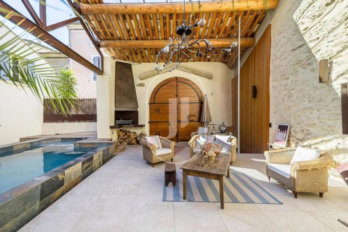 Propriété d'exception avec sa cour intérieure et sa piscine, à vendre à Châteauneuf-du-Pape, dans le Vaucluse.