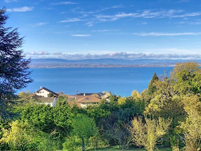 L'étage principale dessert une vaste pièce de vie, avec de larges baies vitrées ouvertes sur la terrasse, le jardin clôt, la piscine et la vue panoramique sur le lac. Sur le même niveau se trouve une entrée avec rangement et une cuisine équipée.