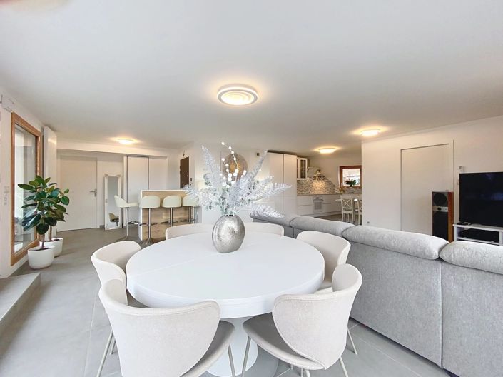 La proximité du lac et de la gare, les volumes et les nombreux stationnements de cet appartement en dernier étage en font un bien rare sur le marché.