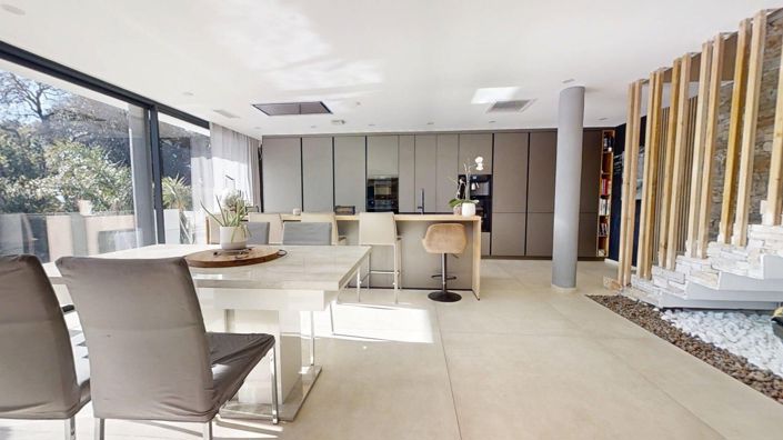 A vendre en exclusivité, Six Fours les plages (83140), au calme entre le Brusc et le centre ville, à seulement 1,5 km des plages et à proximité directe de la forêt, magnifique propriété neuve (en cours d'achèvement) d'environ 215 m2 habitables composée d'une maison T5 d'environ 161 m² habitables et d'une dépendance T2 d'environ 54 m² habitables pouvant être reliées entre elles le tout sur un terrain plat avec piscine d'environ 1100 m2. La maison principale se compose de plain-pied : entrée, séjour avec cuisine de 70 m² exposé Sud donnant sur terrasse et piscine, buanderie, wc séparé, suite parentale avec salle d'eau, dressing et wc. A l'étage, trois chambres dont deux avec leur propre salle d'eau donnant sur terrasse Sud et un wc séparé.