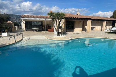 Située dans un quartier résidentiel, belle villa provençale lumineuse de Plain pied de 177 m² env sur 2335 m² arboré. aucun vis à vis exposition Est.Sud.Ouest composée 1 hall d'entrée desservant : tres belle cuisine équipée22 m2 séjour salon 50 M2 avec cheminée, le tout donnant sur très belle terrasse et piscine traditionnelle, 3 chambres, 2 salles d'eau, W-C ind, R.J: buanderie, 1 chambre, salle d'eau, W-C ind., 1 pièce 20 m2 Divers: garage 53 m2 + garages supplémentaires 14.5 M2 1 abri outils jardin 12 M2 cave, portail auto., climatisation reversible, accés facile Absence D'amiante