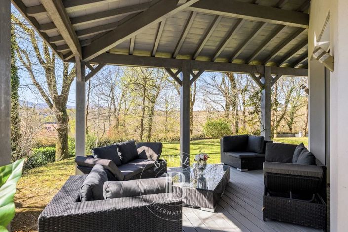 Située sur les hauteurs d’Ascain, à proximité du bourg, cette maison contemporaine de 2015 offre environ 200 m² habitables dans un environnement calme avec vue sur les montagnes. Édifiée sur un terrain arboré de 800 m² exposé plein Sud, elle séduit par sa luminosité et ses beaux volumes.