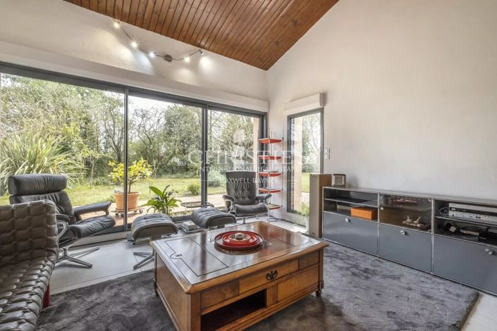Chaleureuse et lumineuse maison d’Architecte d’environ 208 m2 édifiée sur une parcelle de plus de 1500 m2 au sein du bois de La Boularde sur la commune de Lagord.