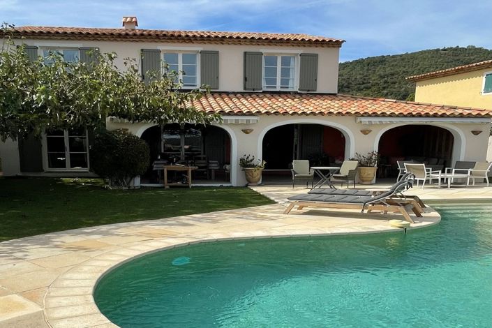 Aux Issambres, dans une résidence sécurisée avec concierge, piscine, terrain de pétanque et court de tennis, se trouve cette magnifique bastide avec une terrasse offrant une vue imprenable sur la mer et une autre offrant une vue magnifique sur les collines. Le rez-de-chaussée comprend un hall d'entrée avec toilettes et vestiaire, un spacieux salon/salle à manger avec cheminée, un bureau pouvant être transformé en chambre et une cuisine fonctionnelle et équipée. Il y a également une grande véranda avec stores et chauffage, qui permet de profiter de la vie en plein air toute l'année. À côté se trouve une belle piscine à débordement traditionnelle chauffée (entièrement rénovée en 2023). L'étage est dédié aux chambres (avec un total de 10 lits) et se compose d'un palier menant à une chambre principale (climatisée) avec dressing et salle de bains avec toilettes, ainsi que trois chambres (climatisées), deux salles de bains dont une avec toilettes. Un grand garage et trois places de parking sur le terrain complètent le tout. Il est possible d'acheter séparément un emplacement dans le port des Issambres, comprenant 1 place de parking.