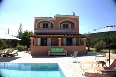 Un Villa de 158m2 avec un Piscine dans un Terrain clôturé de 2000m2, avec un Vue mer, et près de la mer à Almiros Acharavis.
