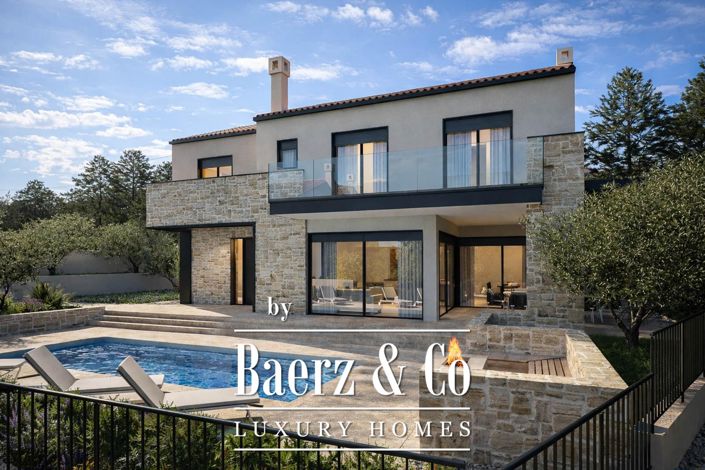 Luxe Villa Šilo première rangée à la mer Croatie est une résidence contemporaine située tranquillement à seulement 150 mètres du rivage, offrant une expérience de vie exceptionnelle à Dobrinj, Croatie. Ce Villa conçu par l'architecte combine une intimité raffinée avec une vue expansive sur la mer depuis les balcons supérieurs. Avec une surface de 232 m2 sur un Terrain de 710 m2, le Villa est conçu pour un luxe et une fonctionnalité subtils. Le Rez-de-chaussée s'ouvre sur un salon, une salle à manger et une cuisine généreux, complétés par une cuisine auxiliaire et un accès direct au Terrasse couvert et au Jardin aménagé professionnellement. Une toilette pour invités, une salle technique et un rangement spécial améliorent encore le confort de la vie quotidienne. À l'étage, quatre chambres offrent chacune une salle de bains et un accès à des balcons donnant sur la mer, offrant ainsi un refuge privé pour se détendre. À l'extérieur, un terrain chauffé, une terrasse et une cuisine d'été soigneusement aménagées vous invitent à vous amuser toute l'année parmi des oliviers d'environ 150 ans. Des finitions de haute qualité sont évidentes partout, avec des menuiseries en aluminium Wicona, du verre trempé triple vitrage, des carreaux en céramique Mariner grand format et des articles sanitaires Hansgrohe. Chauffage au sol, un système de refroidissement multi-part, et un mobilier de conception complet assurent une disponibilité immédiate pour la vie ou la location. Ce Villa combine harmonieusement design, durabilité et cadre adriatique.