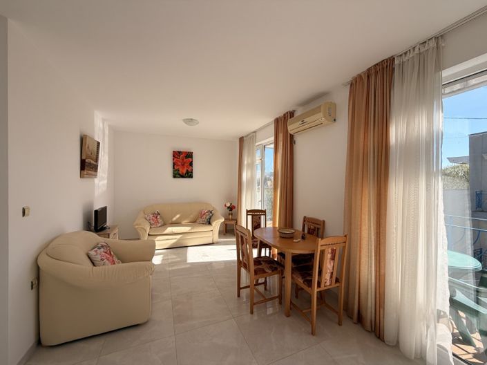 Dernier étage ensoleillé Appartement, 61,4 m2, ensoleillé Jour 4, 10 min à la mer KC Properties est heureux de vous offrir cette très ensoleillée et spacieuse 1 chambre Appartement, qui est situé dans un complexe résidentiel ensoleillé Jour 4 dans la plus grande station balnéaire en Bulgarie plage ensoleillée. La distance jusqu'à la célèbre plage de Cacao est d'environ 700 m (10 minutes à pied). Le complexe propose les installations et services suivants sur place: - piscine avec espace pour enfants; - réception; - sécurité; - Parking Frais d'entretien annuel de 580 EUR. La propriété a une superficie totale de 61,43 m2. Il est situé au 4ème étage - Dernier étage et comprend: - cuisine en plein air avec salon; - une chambre à coucher; - salle de bain et toilettes; - 2 grands balcons. La propriété est en très bon état elle est offerte entièrement Meublé et prête à vivre. Planchers en céramique dans le salon; cuisine équipée d'appareils électriques. Le Appartement bénéficie d'une abondance de lumière naturelle, ce qui le rend très chaud et lumineux. C'est un merveilleux Appartement qui peut être utilisé comme maison de vacances, louer ou pour vivre 4 saisons. Plage à 700 m. Acte 16.