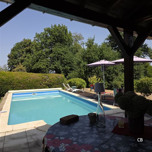 Cette maison de hameau indépendante avec grande piscine et jardin est proposée à la vente dans un pe...