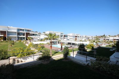 Settled in an exclusive complex of 100 luxury apartments varying in size from one to four bedroom apartments, all located in 15 two-storey blocks, all strategically placed in the huge plot of 22,400m2. Each block is set within beautiful, well-maintained Mediterranean gardens, with tall palm trees offering gently shaded areas away from the heat of the summer sun, and various plants, shrubs, and lawned areas providing lots of outdoor living space for all residents and guests.
