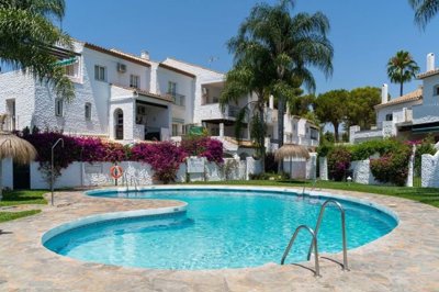 Consists of 2 bedrooms, 2 bathrooms (one of which is ensuite), a fully fitted kitchen and a spacious and bright split level living dining room with high ceilings and direct access to the private garden. Las Palmeras de Benavista is an attractive and quiet Andalusian style urbanization with 2 community swimming pools. It's situated walking distance to shops, supermarkets and restaurants, a 2 minute drive to El Paraiso Golf and a 15 minute drive to the centres of both Estepona and Marbella. Good to know: all furniture and a private parking space are included in the price.