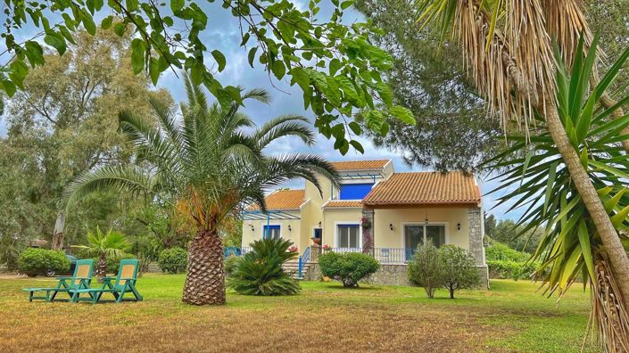 Harbour Villa is set in a large garden with the local sandy beach just outside the front gate, and near to the village of Lefkimmi with all amenities and the port for quick access to the mainland.