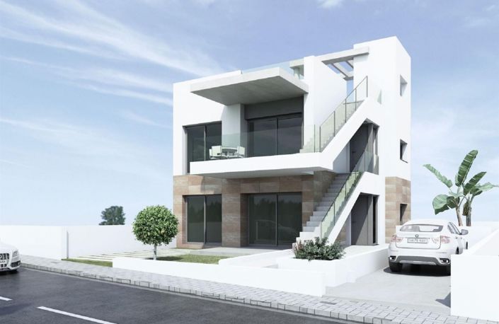 This brand new Top Floor bungalow has a communal pool and green area for the owners. Accommodation comprises of Lounge, dining and kitchen area with access to the terrace and stairs leading to the private roof solarium. There are three bedrooms, one with en-suite bathroom and all having fitted wardrobes. There is private parking and communal areas.