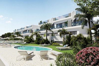 The semi-detached villas stand out for at first sight by the perfect balance that transmits the combination of pure and minimalist lines, with other curly and organic ones, very smart and elegant. In the terrace you could enjoy your meals with family and friends, sunbathing, and refreshing in the swimming pool included.