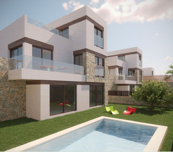 We are pleased to offer these beautiful luxury Villas situated in a prestigious location above Finestrat in the Costa Blanca North, Spain. These luxurious homes enjoy far reaching views over Puig Campana Golf toward the Mediterranean and the skyline of Finestrat and Benidorm providing a fantastic site when enjoying those warm nights taking in the view from the terrace. These lovely Villas are distributed on three levels. Entrance is into the main floor of the property which provides a spacious and modern living and dining area with modern fitted kitchen. Two bedrooms with fitted wardrobes, family bathroom and two large terraces to the front and rear. The first floor homes the master bedroom with en-suite and another large sun terrace from which to enjoy the fabulous views.Included in this model is a large underbuild which provides a superb recreational and family area with access directly onto the garden and private pool. This private and spacious residential area enjoys a beautiful mountain backdrop with access to beautiful countryside and places such as the historical Guadalest, Polop and Fonts d'algar with its natural mountain waters for bathing. The fantastic golf course of Puig Campana is on the doorstep whilst a short drive will find you in the vibrant resorts of Finestrat and Benidorm with their amazing sandy beaches and superb facilities and restaurants.