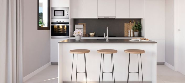 This residential development features a total of 134 units with options of 2, 3, and 4 bedrooms spread across 9 blocks, each showcasing a modern and avant-garde design that seamlessly integrates with the neighboring golf course. Oriented to the west-southwest, the buildings are positioned to maximize natural lighting and offer breathtaking views of the surrounding natural landscape, with some homes also boasting sea vistas.
