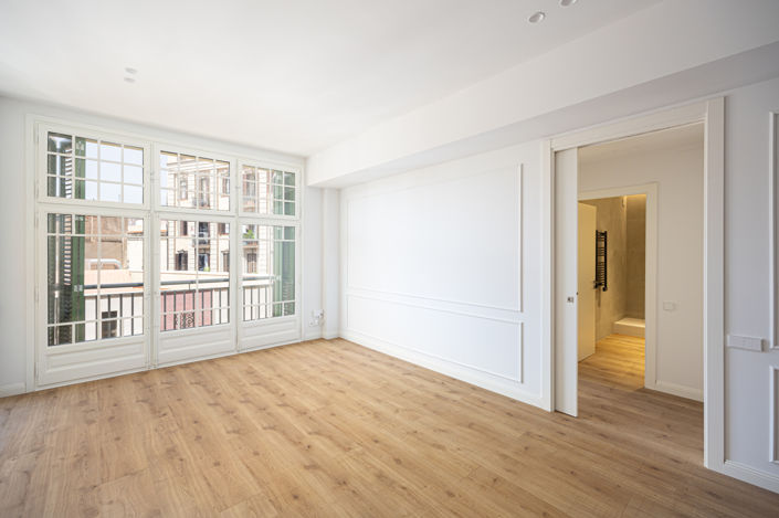 For sale magnificent COMPLETELY RENOVATED APARTMENT of 147 m2, in a building from 1922 listed as an asset, in Noucentista style and known as Casa Lluís Guarro, was commissioned by this paper manufacturer to the renowned modernist architect JOSEP PUIG I CADAFALCH, whose most important works Well-known are the Casa Amatller and the Casa de les Punxes. Excellent location, in the Gothic quarter, very central and well connected, next to the Cathedral and very close to Plaza Cataluña. On a 4th floor of real height, with lots of natural light, we find a stately home in which a careful rehabilitation has been carried out.The house has an open kitchen integrated into the living-dining room, 3 double bedrooms, one of them is a suite with bathroom, 1 single bedroom, and 2 bathrooms. The large and multipurpose water area is independent. Highlight the splendid views of the Cathedral and its orientation, very sunny, it has 3 balconies.The images advertised correspond to the rehabilitation project that is being carried out.