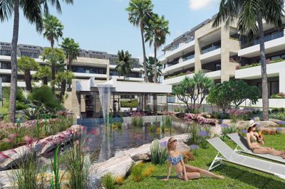 This residential complex has 2 and 3 bedroom apartments, (with either 1 or 2 Bedrooms), with ducted air conditioning and underfloor heating in the bathrooms. Private garden and large porches on the ground floor; bright terraces and magnificent solarium for the first floor. All with parking space. You can choose to receive your home fully equipped and furnished with different styles and ranges of equipment, specially designed for your home.