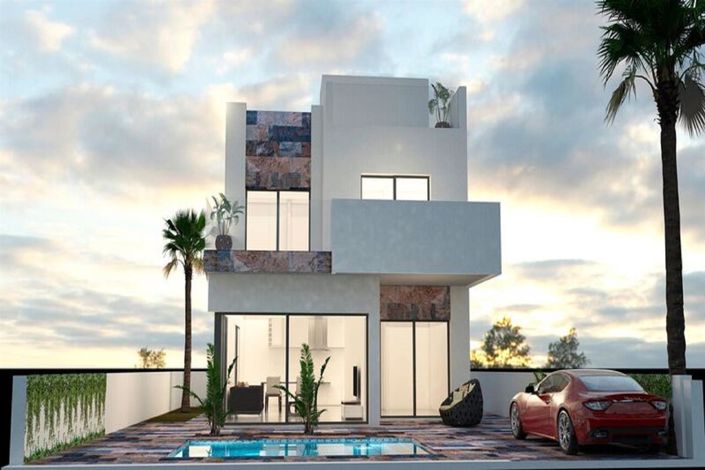 BRAND NEW MODERN DETACHED VILLA - 3 BED 3 BATH with Private 3x4.5m2 Swimming Pool and garden. Only 5 mins away from the nearest beach and 800m to the 3 Villamartin golf courses, La Zenia Boulevard with all local shops, bars and amenities.