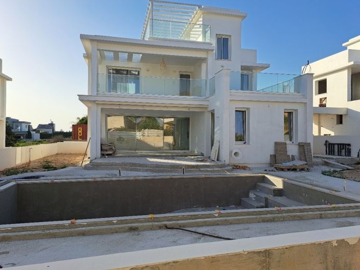 Intimate, private project consisting of only 8 villas. Located in one of Larnacas most coastal and beautiful areas. Just a short drive to clean, sandy beaches. Very tranquil, easy going lifestyle, within a community that has all necessities, many amenities including supermarkets, pharmacies, bus stops and more. The property has comfortable living spaces, one of the bedrooms is located on the ground floor. Bright, airy and offering an indoor-outdoor living experience. Swimming pool is optional and according to the floor plans of each villa.