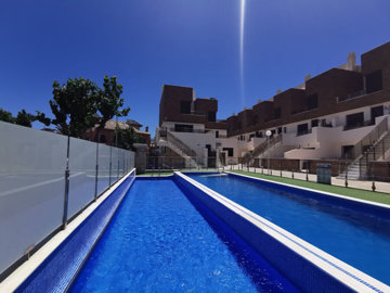 New Beachside Apartment Los Alcazares. We now have available this fantastic 3 bedroom ground floor apartment for sale right beside the beaches of the Mar Menor here in Los Alcazares. Set within this secure gated community, the apartment sits in prime location here in Los Alcazares, at the end of the 525 strip. Inside the community you have access to the 2 swimming pools which are directly outside the apartment. This is great for families or for rentals with children having direct access. Inside thte apartment has a large open plan main living and dining room, with an open plan kitchen complete with appliances and breakfast bar area. This whole main floor space can be extended out to the private terrace with plenty of space for outdoor seating and dining by the pool. Back inside there are a total of 3 large doubel bedrooms with fitted wardrobes, and 2 modern stylish bathrooms. You are then just a few hundred meters from the beaches of the Mar Menor and all the amenities you could wish for here, meaning there is no need to hire a car with this property as its all on your doorstep. The property is being sold fully furnished with all appliances, airconditioning and is an amazing rental investment or holiday home here in Spain. CONTACT US FOR MORE INFORMATION
