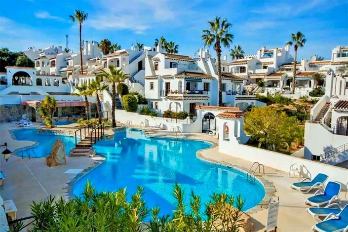 The urbanisation of Verdemar III is renowned for its beautiful communal pools and lush gardens, featuring tranquil water features and ponds. One of the two exquisite pools is just steps away from your front door. The location is ideal, being less than 800 meters from the La Fuente commercial centre, which offers a fantastic selection of bars, restaurants, and supermarkets. For golf lovers, the renowned courses of Villamartin, Campoamor, and Las Ramblas are just a short drive away. Additionally, the stunning beaches and Zenia Boulevard can be reached in under 10 minutes by car.