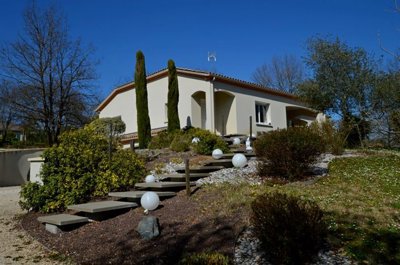 Superb luxury villa with 4 bedrooms and swimming pool. This beautiful villa is located on the hills of Beaupuy, just a few kilometers from Marmande. The house includes an entrance hall, a large living room of 67 m² with a fully equipped kitchen, 4 bedrooms including a master suite with dressing room and shower room, a second shower room, 2 toilets, a laundry room. The underfloor heating by heat pump is very comfortable and economical (DPE in B). The house is also equipped with fiber, mains drainage, central vacuum, a thermodynamic water heater and an alarm. You also have a double garage of 78 m² with 2 motorized doors. A 46 m² terrace, partly covered, overlooking the 5m x 11m swimming pool, all in a very pretty wooded setting of 3,504 m². 170 m2 of habitable space - Entrance: 6.30 m2. Living room + fitted kitchen: 67.70 m2. Bedroom 1 with dressing + ensuite: 24.20 m2. Bedroom 2 : cupboard. 11.10 m2. Bedroom 3 : cupboard. 12.10 m2. Bedroom 4 : cupboard. 12.80 m2. Shower room : 8 m2. Laundry : 6.40 m2. Terrace (of which 16 m2 is covered): 46 m2. Garage (basement) : 78 m2. Underfloor heating via heat exchange pump. Double glazing. Mains drainage. 3 504 m2 of garden. Pool 11 m x 5 m.“Information on the risks to which this property is exposed is available on the Georisques website: