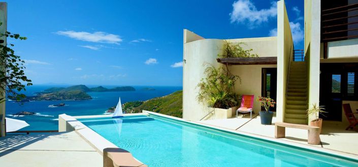Based on the Moorish principle of using water as a central feature, the main focal point of the entire house is the central infinity pool, providing unparalleled views of the ocean and Grenadine island chain beyond. Most of the rooms lead directly off the elegant pool, merging the interior living space with the stunning landscape, making Mangwana spacious, cool and airy, yet still surprisingly intimate.