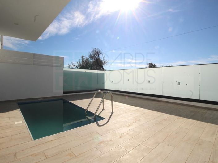 The outdoor area is a true paradise featuring a pool, ideal for relaxing and socializing outdoors. The terrace offers a pre-installation for a jacuzzi, promising moments of pure enjoyment under the Algarve sky.