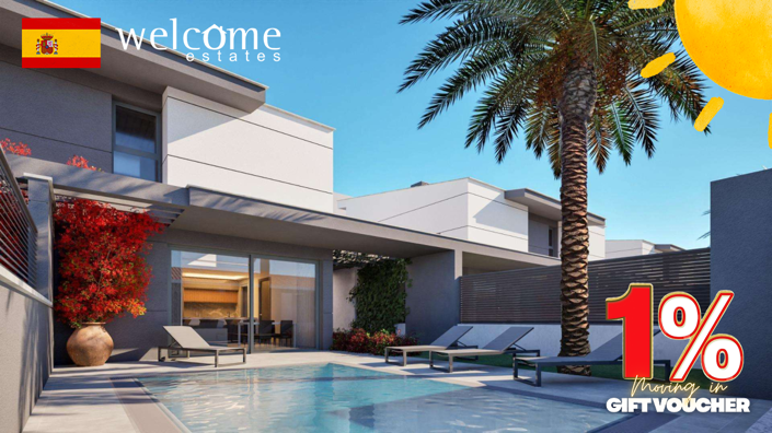 THIS PROPERTY INCLUDES A 1% WELCOME ESTATES GIFT! Which can be redeemed for white goods, furniture lighting and much more. NEW BUILD SEMI-DETACHED VILLAS IN LOS NIETOS, LA MANGA MAR MENORNew Build semi-detached villas in Los Nietos, Murcia. We offer for sale 6 villas with three bedrooms and three bathrooms.These exclusive houses are designed with elegant and functional interiors, fully equipped kitchen, appliances included. The bathrooms have a vanity unit with washbasin and light. The bedrooms include lined wardrobes with drawer units and each property has pre-installation for ducted air-conditioning.The exteriors are no less impressive, including a private swimming pool and a large solarium with Summer kitchen so you can enjoy the sun all year round. In addition, the houses have solar panels installed.Sandy beach of Los Nietos on the western shore of the Mar Menor stretches for 2.7 kilometres in front of the urban area of Los Nietos, averaging 15 metres in width.Due to its position in front of the main residential area of this outlying district of the Cartagena municipality, it enjoys high occupation during the summer mo although winter visitors can enjoy virtual silence as many of the properties here are owned by residents of the cities of Murcia and Cartagena or further afield, who enjoy the area for their summer holidays.This is a Mar Menor beach, enclosed within the protective circle of what is, essentially, Europe's largest saltwater lake, although it's often difficult to think of this as a lake as it is fed by the Mediterranean, and is on the Mediterranean coastline.