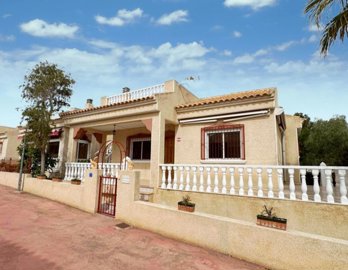 Located at the end of a cul de sac on the popular Montemar urbanisation in Algorfa is this three bedroom detached villa.
