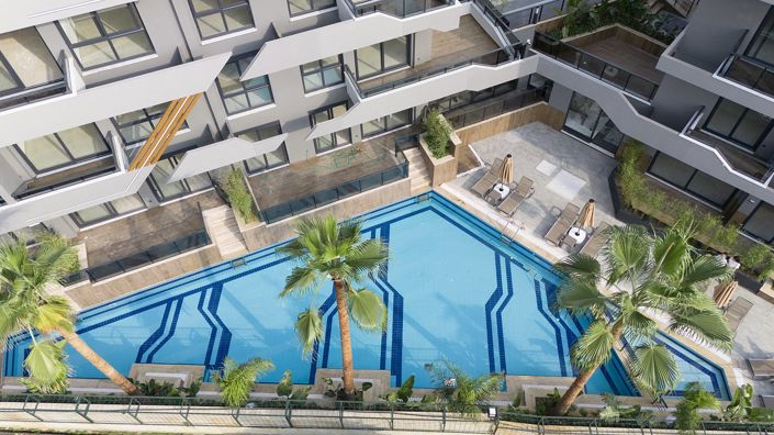 Apartments in Antalya, Alanya for sale are situated 50 m from the market, 120 m from the bakery, 1 km from the shopping center, 1.3 km from the beach, 2 km from the hospital, 3 km from the city center, 37 km from Gazipasa Airport.