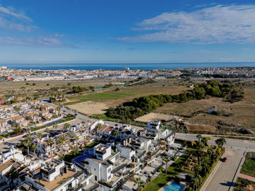 Welcome to this extraordinary duplex penthouse apartment, located in the heart of the prestigious Muna Spa & Resort in Los Dolses. Designed for an unmatched lifestyle, this home features five terraces and balconies facing both sunlit and shaded directions, making it a true retreat. With breathtaking sea views from every room and a seamless blend of modern design and premium amenities, this property is perfect for those seeking something truly special. This thoughtfully crafted home, built by one of the most renowned builders on the Costa, includes an open-plan living area that connects a bright and inviting lounge with a fully equipped modern kitchen. The kitchen features sleek finishes, clever storage solutions, and stylish wooden shutters, while an adjacent utility room provides additional functionality with space for a washing machine and water heater. The apartment boasts three generously sized bedrooms, all with built-in wardrobes. The master bedroom and one other bedroom open directly onto private terraces or balconies, perfect for unwinding in peace. Two elegant bathrooms, one en-suite, are beautifully designed with contemporary earthy tones, adding a touch of sophistication. Step out from the living room onto a spacious terrace complete with an awning, providing a cool escape on hot days. The upper level offers another terrace featuring an outdoor kitchen, barbecue, and dining area – ideal for hosting meals while soaking in the stunning views.The standout feature of this stunning penthouse is the expansive roof terrace. Here, you can relax in the jacuzzi, lounge in the seating area, or sunbathe in privacy while enjoying panoramic sea views. This space is perfect for summer evenings, alfresco dining and entertaining. Located at the stunning Muna Spa & Resort, built to an exceptionally high standard by one of the most renowned builders on the Costa with stunning communal areas including an impressive communal pool, indoor heated pool, sauna , gym and immaculately landscaped gardens situated within walking distance of restaurants, shops, and supermarkets, the apartment offers unparalleled convenience. Walking to the local amenities of the commercial area of Los Dolses, plus the renowned La Zenia Boulevard shopping centre, with its vast array of stores and entertainment options, is just minutes away, while stunning beaches and top-tier golf courses are a short drive from your doorstep. Contact us today for your viewing