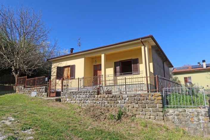 Detached house on one level with courtyard of 145 sq m and garden of 300 sq m set in a charming village where there are bars, a restaurant, a grocery shop and the train stationThe property which has a beautiful panoramic views over the Apuan Alps, comprises: Veranda, entrance hall, kitchen, dining room with thermo fireplace, hall, two double bedrooms, bathroom with bath, cellar and courtyard on ground floor.Central heating (thermo fireplace requiring modernisation)You can park the car directly at the house