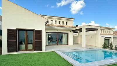 Distributed on a single floor, these magnificent villas have 3 bedrooms with fitted closets and dressing room in the master bedroom. Its two bathrooms, one of them en suite, are fully equipped with sink, mirror, full shower screen and underfloor heating. Open plan lounge with fitted kitchen and breakfast bar with patio doors leading to a large private terrace with pergola area, overlooking the private swimming pool.
