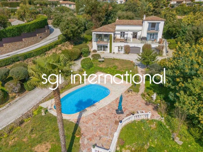 Située dans le domaine sécurisé de Beauvallon Bartole, cette villa de 280m2 habitables profite d'une belle vue mer, sur un terrain de 3.750m2 arboré avec piscine.