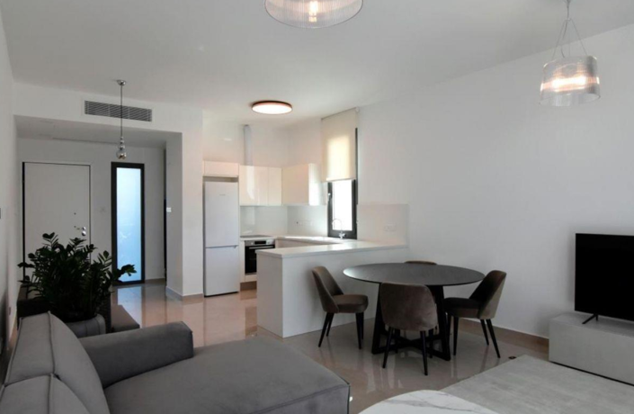 New modern 3 bedrooms townhouse in Potamos Germasoya, just 600m form the sea, peaceful atmosphere of the quiet street in the neighborhood, with no tall buildings nearby is successfully combined with the closeness to the city's entire infrastructure - shops, pharmacies, restaurants and cafes, which provides excellent conditions for recreation, and for comfortable family living. Gated complex consists of seven 3 bedrooms maisonettes with hi-end finishing, installed VRV air conditioning system and underfloor heating. On the ground floor there is an open-plan living and dining area with a kitchen and a guest toilet. The first floor accomodates 2 bedrooms and a main