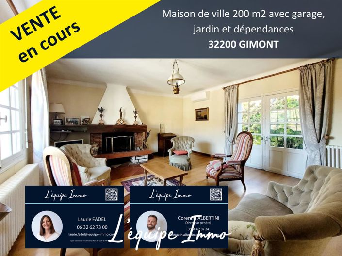 Located in the center of Gimont, close to all amenities on foot, come and discover this T5 town house of 200m2 of living space with garage, courtyard and other outbuildings. You have on the ground floor a large entrance, two living rooms with fireplace, one of which is equipped with recent air conditioning, a kitchen, a bathroom with separate toilet and a bedroom with its own bathroom. An old wooden staircase takes you upstairs where the large corridor serves 3 bedrooms as well as a convertible attic. Added to this are several outbuildings, a porch that can accommodate 4 vehicles and a courtyard of more than 100 m2 without any vis-à-vis. The advantages: - The location - The character of the old - The exterior - Recent boiler - Good Dpe