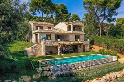 The villa boasts high quality construction: magnificent stone facade, wonderful swimming pool, high-end materials and finishes, reversible air conditioning, electric gate.