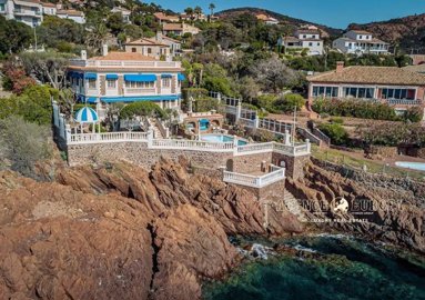 Located on the waterfront between Cannes and Saint-Tropez, on the famous Corniche d'Or, at the foot of the Esterel Massif and surrounded by its famous red rocks, this superb Belle-Epoque-style villa, built in 1930, offers approximately 262sqm of living space. It features three en-suite bedrooms, an office, a spacious 70sqm living room, and a separate studio. The land of 730sqm, includes various terraces, a beautiful pool area, a solarium, and direct access to the sea.
