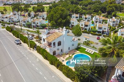 Renovated villa with golf views – an oasis of calm and elegance Welcome to this unique villa overlooking the lush golf course in the heart of Villamartin – a place where the tranquility of nature meets the convenience of a well-established residential area on the Costa Blanca. Located on the charming Calle Manuel de Falla 150, this completely renovated property offers a home where every detail has been carefully thought through, from the floor plan to the choice of materials and garden design.